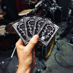 I also make download cards and stickers to give away at live gigs so that people can find our music more easily. Each single has a different design and have become collectable as a series.